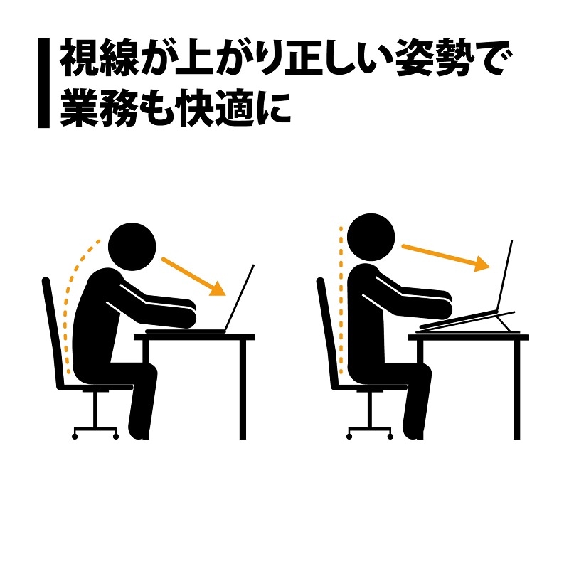 前傾姿勢になりがちなデスクワークも、本製品を使うことで無理な姿勢をせず、より快適に作業ができ、長時間作業する首や背中への負担を軽減し、疲れを緩和できます。
