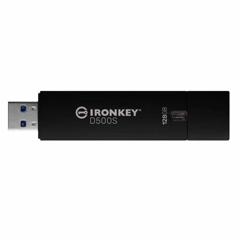 Kingston IronKey™ D500S USB フラッシュドライブは、機密データを保護するためにミリタリーグレードのセキュリティを備えています。新しい拡張機能により NIST による FIPS 140-3 レベル 3(申請中)認定を取得しており、官庁および軍事用途に対応するより強固なセキュリティと攻撃に対する防御を実現しています。データは D500S 上で暗号化および復号化され、ホストシステムには一切痕跡が残りません。ハードウェアベースの XTS-AES 256 ビット暗号化により、防水*1、防塵*1、ミリタリーグレード*2 に準拠した耐衝撃性と耐振動性、耐衝撃性を備えた頑丈な亜鉛筐体を備え、内部コンポーネントを衝撃から保護するためにエポキシで充填されています。