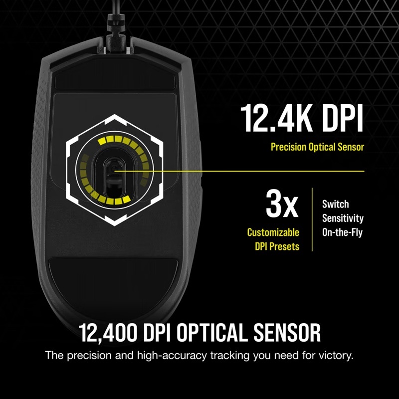 カスタム PixArt 12,400 DPI 光学センサーは、勝利に必要とする正確で高精度なトラッキングを提供します。